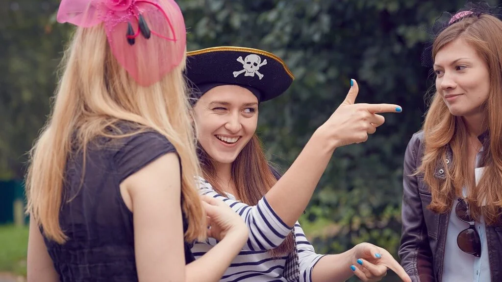 Квесты на природе — это праздник для взрослых, детей или подростков. Игроки взаимодействуют не с предметами, как в квест-комнате, а друг с другом. К вам на пикник приедет ведущий с игрой и реквизитом, и гости на пару часов перевоплотятся. Например, в пиратов.