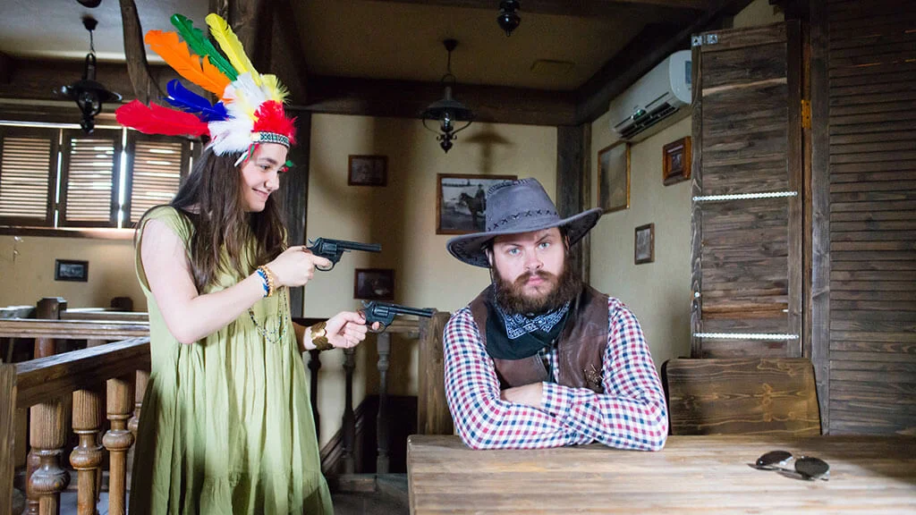 А тем временем жители Бонанзы пережидают тяжёлое время в салуне «Севен Мун», не тронутом селем. Несчастье объединяет всех, поэтому за одним столом оказались ковбой и индеец, приличная барышня и девица из кабаре.
